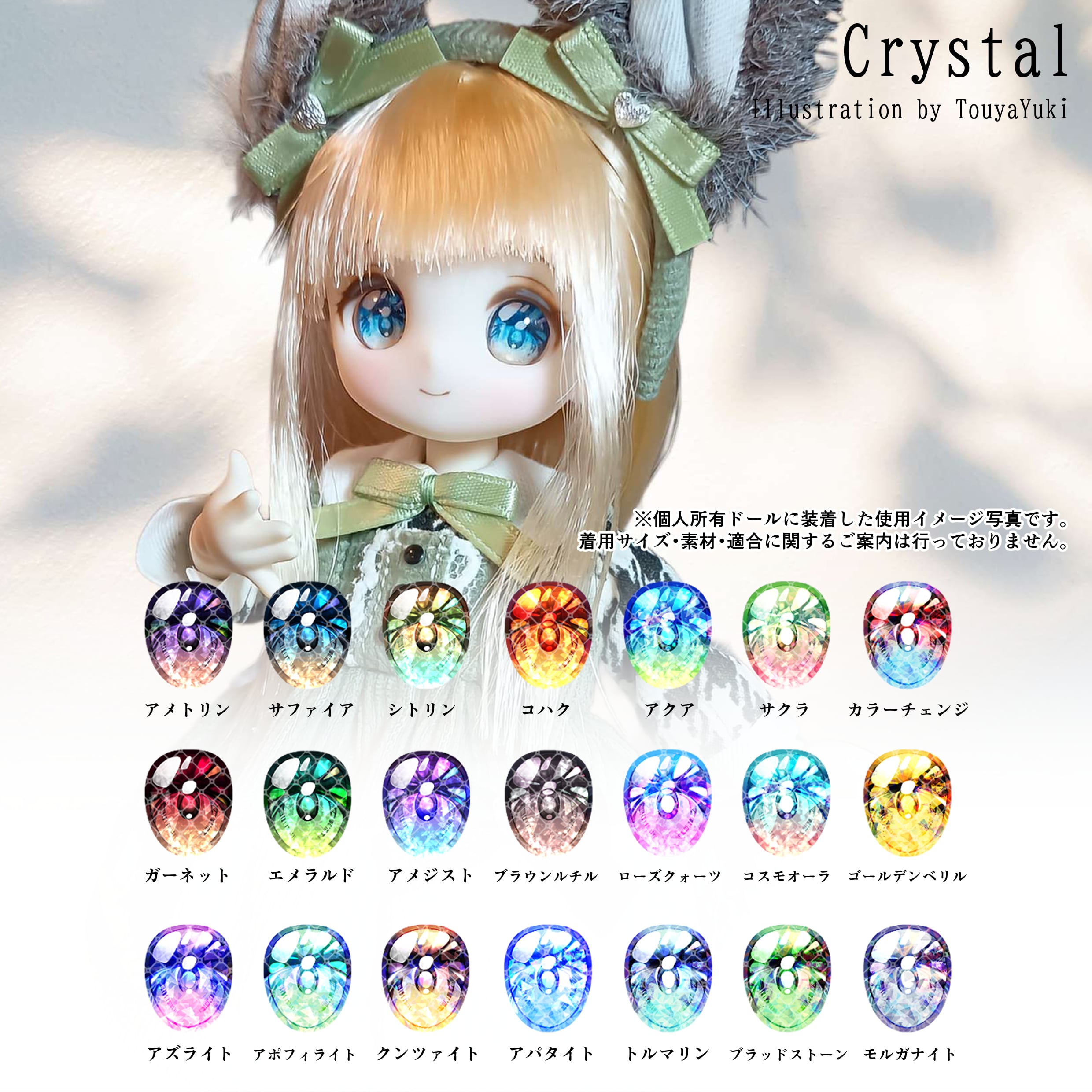 ※ドールアイの配置や出来栄え・生来のドールの顔の形状により、装着時に隙間が出ることもございます。